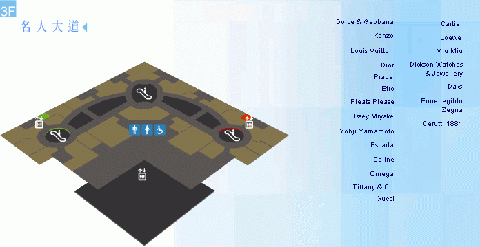 位於3樓的名人大道區,匯集全球最頂尖的名牌精品,以及最多全新概念的品牌旗艦店,宛如置身紐約第五大道,提供與巴黎、米蘭同步的最新頂級全系列商品,是台灣最高雅舒適的精品名店大道。