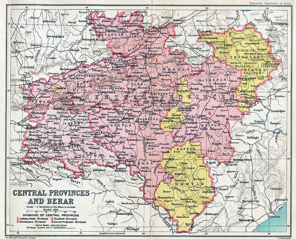 4. Chhattisgarh Division. Native States colored yellow.