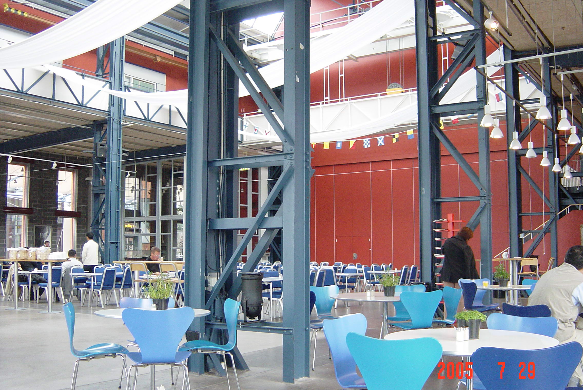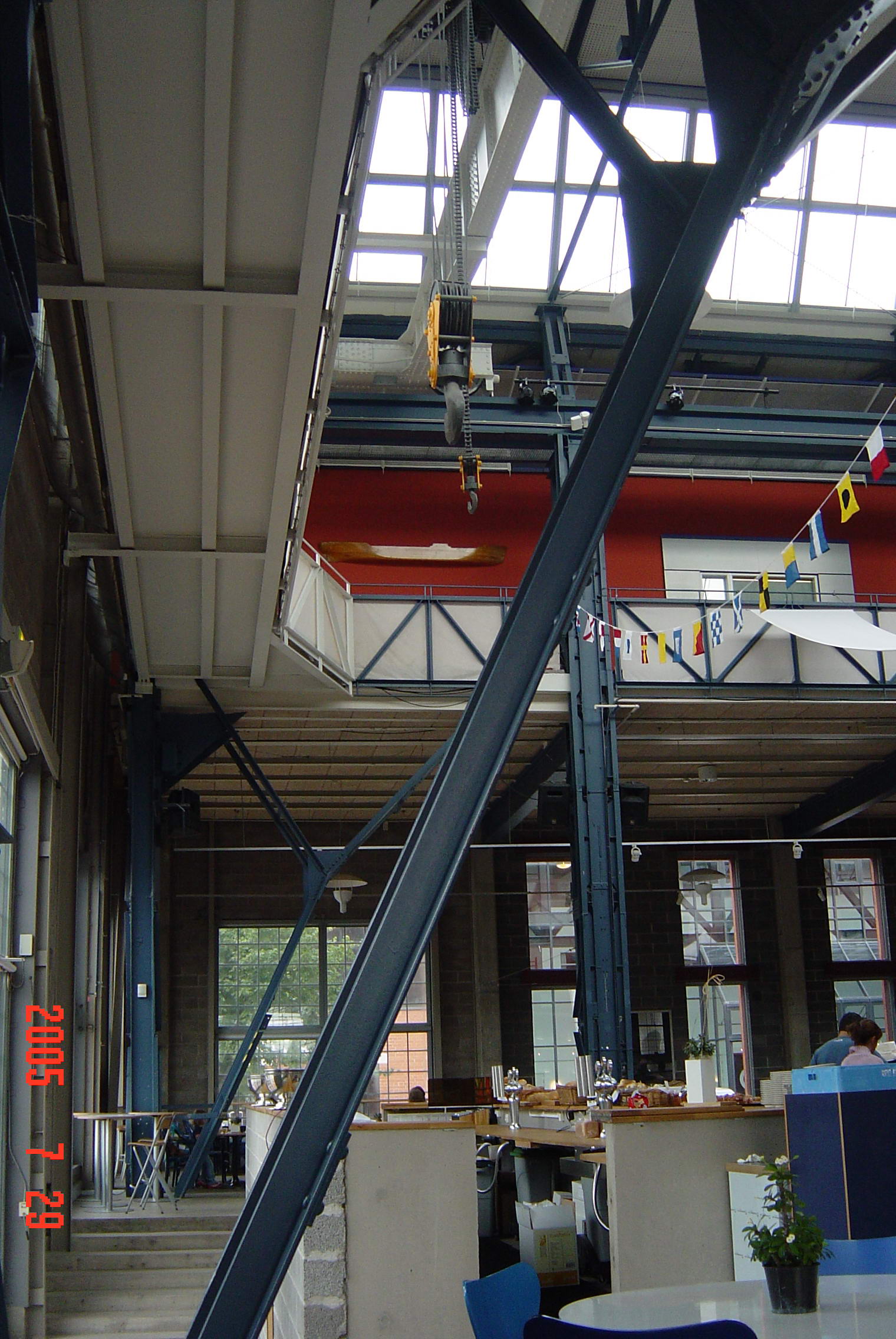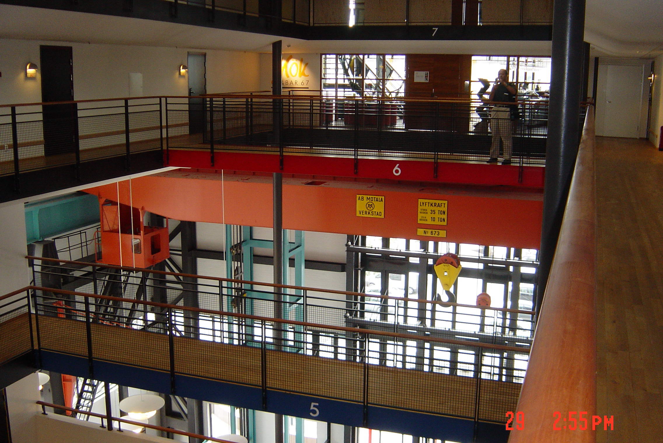 最近去了一趟瑞典哥德堡,入住的旅馆非常有特色,这儿原来是一家大型的造船厂,船体车间改造成六层客房,机加工车间改造成餐厅和会议、娱乐场所;厂房内特意保留了原来的天车,墙壁上用与工厂有关的图片、模型装饰。