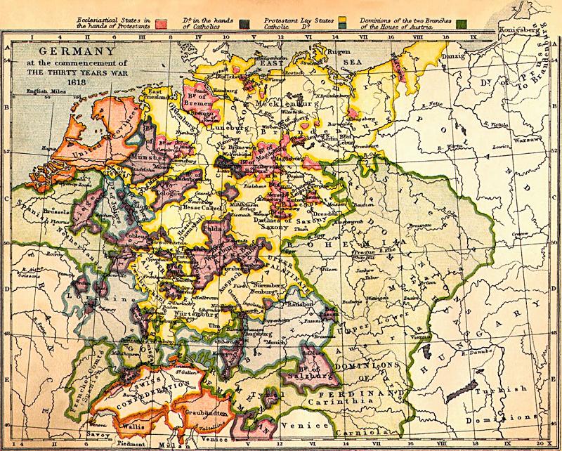 Germany Map at the Start of the 30-Year War, 1618