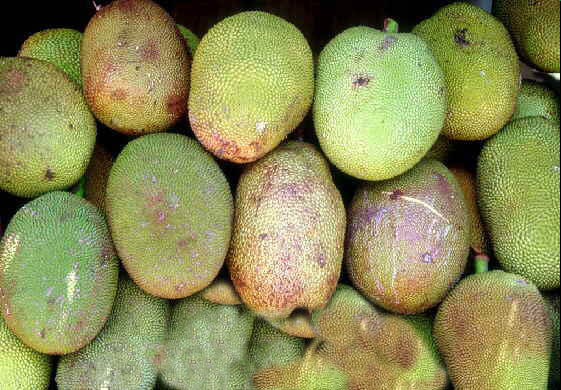 菠萝蜜:我见过长在树上的,只要是走在高速路上,路两边很多挂在树杆上的菠萝蜜,像一个个大肿瘤。味还可以,有干的和湿的两种,干的要比湿的好吃,湿的粘乎乎的。