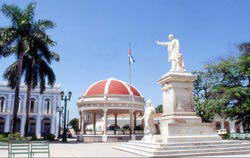 哈瓜海湾位于古巴岛中南部,古巴和加勒比地区最年轻、最美丽的城市、西恩福戈斯省的省府西恩富戈斯城就坐落在哈瓜海湾畔的中部,距哈瓦那260公里,由国家高速公路相通。这座城市道路对话堪称新古典主义的典范,条条道路整齐化一,令人惊叹。建筑物正面高大支柱的位置和带点折衷主义晚期新古典结构、雄伟楼群的墙壁行程整齐化一的直线,使城市具有古典风格和庄严特征。市中心是殖民主义时期的建筑精华,武器广场今天已是何塞.马蒂公园。公园里耸立着古巴唯一的法国式凯旋门;公园四周都是19世纪末和20世纪初建造的建筑。许多豪华的小宫殿式的建筑都是从法国的装饰风格受到启迪设计而成的。从城市的高坡远远望去,城市的海洋风光尽收眼底。