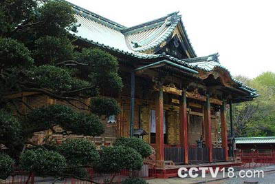 从上野公园僻静的角落折进去,在动物园的后面是供奉幕府将军德川家康的神社。德川家康统一了日本,建立了东京,他的家族曾经统治日本达250年之久。这座神社峻工于1651年,像日光的东照宫一样(见68页)极度奢华,画栋雕梁。这也是东京仅有的一个"国宝"级神社。门柱上雕刻的龙和神社内四组动物画,均出自于17世纪的艺术家之手。