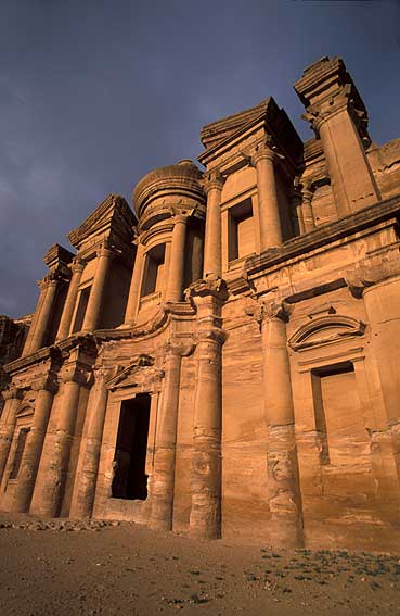 修道院是佩特拉规模仅次于卡兹尼的建筑,是那霸田人沿山劈凿而成的一座神殿或皇家墓室,在罗马和拜占庭时期被作为修道院,正面宽50米,高45米,前面有8根巨大石柱,是佩特拉最大的石凿建筑。高地另一段陡峭的山路通往阿塔夫山脊,在一片人造的高地上有两方尖碑。