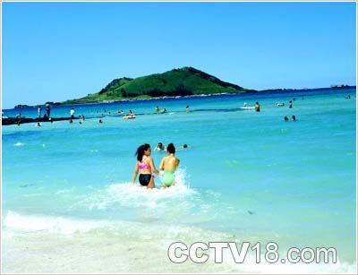 挟才海水浴场 位于翰林邑西面,与翰林公园相连。白色的沙滩上满是贝壳的粉末,前海上有飞热情接待岛。海岸线长达9公里,到处都可看见蓝色的海水和绿色的松林,景色十分美丽。长20米的沙滩,海水较浅,仅为1.2米,坡度较缓,十分适合于全家人共同享受海水浴。这里还有各种服务设施,松林中还可进行野营。