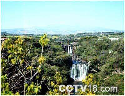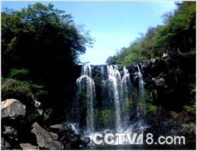天帝渊,顾名思义,是“天帝之渊池”之意,瀑布分为三段,周围的温带森林有松叶兰等珍贵的植物。第一瀑布(高22米,水深21米)所在的东方的岩石洞顶部有冰凉的水流下,目前禁止游泳。