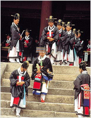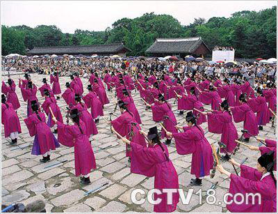 宗庙是供奉李朝历代国王牌位、举行祭祀的地方。1394年太祖(1335-1408)李成桂在创立李氏王朝后,在新的都城即汉阳修建了景福宫,同时也在这里修建了宗庙。由于这里很好地保留了庄严的祭礼、祭礼乐等古老的传统及习俗,因而被指定为世界文化遗产。