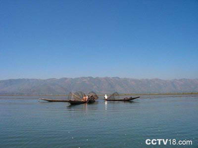 从良瑞镇码头乘装有马达的长形木舟,经过长约五、六公里的河道,便驰入湖心。纵眼一看,湖水湛蓝,水天一色,浩瀚无边,仿佛置身大海。沿途有一群群海鸥追逐迎宾,若投食空中,海鸥便作飞行花样表演,煞是可爱。船在湖中破浪前进,不时与茵莱人擦肩而过,他们那种独特的用脚划浆的方式令人惊叹叫绝,过目不忘。划船者站在船的尾端,一只脚踩在船板上,一只脚悬空荡浆。如用左脚划船,则用左手握住浆把;用右脚划船,则用右手握浆。划船时,手、腰、脚同时用力,使小船飞速向前行驶,而不划船的手和脚却起平衡作用。在扁舟上摆着一个圆锥状的大竹笼,那就是他们的捕鱼工具——罩鱼笼。他们根据鱼换气时冒出的水泡断定鱼的大小,看准后便将鱼笼插下去,若有震动的手感,再将鱼叉从鱼笼上端的孔中伸进去,把罩内的大鱼叉上来。在粼粼碧波中向南行进约半小时,新的奇观又出现了:只见湖中漂浮着一个个岛屿,有大有小,错落分布在湖面上。岛上长着庄稼和草木,真乃绿岛也!透过绿荫,可窥到一栋栋农舍和寺塔。靠近细看,便发现这些水上建筑有两种建筑法:一是在土层厚的浮岛中心建房,仍采用打地基建筑法,与陆地施工法无异;二是采用打桩法,将柱子的一头打入水底,另一头则露出水面约一米多高,然后在桩上铺木板,建成水上阁楼。“水上人家”以浮岛为单位组成“水上村落”,每个村之间都隔着湖水,遥遥相望,鸡犬之声相闻,村民们甚至可以相互调大嗓门传递信息。若两座浮岛距离较近,便架起拱形竹桥或木桥,这样桥上人来人往,桥下小舟穿行如梭,构成一幅幅“小桥流水人家”的水乡风景。