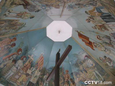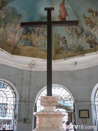 在1525年至1740年间,来自Agustinas教会的僧侣为十架兴建了一个露天开放式的圣坛,当地人相信十字架具有神圣力量,认为只要将十字架削成屑服用,就能够医治百病,便把它的外皮剥落拿走。为了保护此历史古物,后来人在圣婴教堂通往圣佩特罗堡途中建造了一座亭式的屋子用于存放它,现在更特别用Tinadalo木打造了一个空心外框把它包藏在内。同时,六角形的天花板壁画,保留着当年的原貌,色彩非常艳丽逼真。