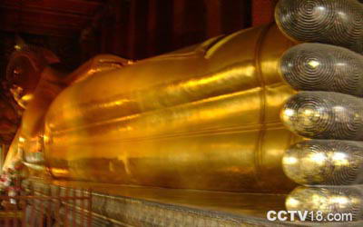 卧佛寺有一系列之"最":它是曼谷历史最悠久和最大的寺庙,拥有泰国最大的卧佛和最多的佛像和佛塔。卧佛寺内的卧佛全长46米,足掌长度5米,宽1.5米,两脚掌相叠,各装饰有珍珠母贝壳镶嵌而成的108个吉祥图案。