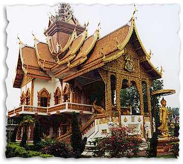 寺中还有缅甸式的塔与藏经阁,但是大雄宝殿与最大的僧院是兰那式建筑,最大的僧院于1975年曾经重修,里面有缅甸式的佛像与壁画。