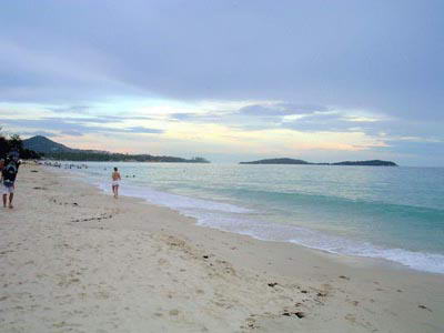 波叶海滩位于苏美岛北边, 两旁分别是湄南海滩和大佛海滩,长度只有2公里,这一条海岸线只有几间零落的小木屋和两三间中型旅馆,附近没有任何商店餐厅,美丽的椰子树后面是一片稀松的针叶林。