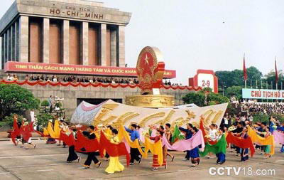 现在,巴亭广场西侧高耸着胡志明主席的陵墓,墓前的花岗岩石壁上镌刻着胡志明的名言“没有什么能比独立、自由更可贵了”。墓西北是胡志明在河内的旧居,西南面有胡志明博物馆。博物馆前有著名的独柱寺。从胡志明陵墓沿雄王路往北,右边是越共中央机关办公驻地,中央领导人也在这里会见外宾。雄王路左侧是主席府,是越南国家领导人会见外宾和举行重大活动的地方。主席府广场是外国高级代表团来访时举行欢迎仪式的地方。