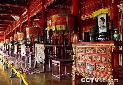 内有紫禁城,紫禁城里又分为两部分,前面有皇帝平时处理政务的勤政殿,后面有皇帝居住的乾成殿,皇后住的坤泰宫,皇太子居住的光明殿,其他后妃居住的顺辉院等。皇城内还设有旗台、太和殿和祭祀历代皇帝的宫广殿和庙宇。整个建筑颇为壮观,是越南现存最大最为完整的古建筑群。