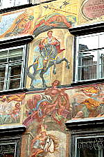 公爵府正面墙上的众神画像分三个等级:最低层、最接近民众的有酒神、工艺之神和女灶神;中间部分有太阳神、冥王神和众神之王Jupiter;最顶层的有商旅之神、战神、战争艺术之神和药神。此外,整栋建筑墙面的壁画有大概220平方米之多,充满了许多神话传说等,这栋建筑在奥地利独一无二,相当珍贵。