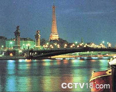塞纳河上的36座桥是巴黎不可分割的一部分,它们和其他的名胜一样,为巴黎的美丽做着一份贡献:阿列山大三世桥Pont AlexandreIII大桥建于1896年至1900年,是为了庆祝俄国和法国建立同盟关系,长107米,宽40米,大桥将两岸的香榭丽舍与巴黎荣军院广场连结起来。