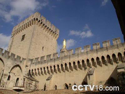 矗立在古城池顶的就是教皇(PalaisdesPapes),以一种君临天下之姿观看他的辖区。教皇宫由教宗本笃(Benedict)十二世及克里蒙(Clement)六世下令兴建,是中世纪最宏伟的城堡之一。自15世纪起,教皇宫成为教皇正副使节的宅邸,后来更成为了一座兵营,一直至1906年为止。教皇宫自此经多次修复,是研究14世纪建筑及油画不可多得的宝库。