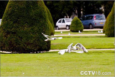 电梯在40秒内把来电视塔的观光客送上207.54米高的旋转空中咖啡屋(全景层开放时间为:3月-10月的9-1点;空中咖啡屋开放时间为:3月-10月的10-1点;11月-2月,全景层和空中咖啡屋都在10-24点开放)。从这里看出去,可以望见教堂、起重机和许多绿地。如果从上半个钟头,就能把所有的景色尽收眼底。
