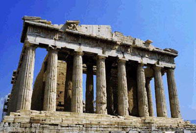 巴特农神庙被认为是多立克式建筑艺术的极品,有“希腊国宝”之称。