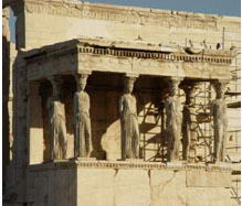胜利女神殿也称为无翼胜利女神殿,位于雅典中心卫城山上一个陡峭的、向西突出的平台上。雅典娜是希腊神话中智慧、技艺与战争女神,她与海神波塞东的斗智中取胜,成为雅典的保护神。