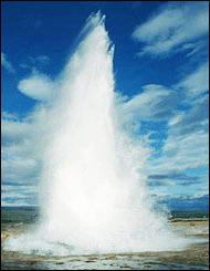 世界最著名的自然间歇喷泉盖锡尔,冰岛语意思为爆泉。旁边还有斯特罗库尔间歇泉,约每隔八分钟左右连续喷射二、三次,水柱高达二十米,十分壮观。