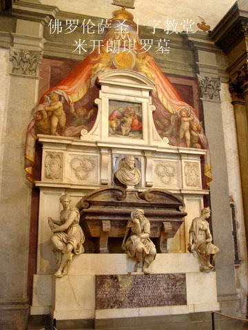 米开朗基罗的陵墓,是由瓦萨利所设计的,他的石棺下方有三个雕塑,分别代表着绘画、雕刻和建筑,是一座非常有设计感并且很端庄的纪念碑。