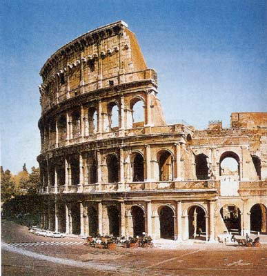 漫步在这一带,不由得让人想起为古代罗马历史增添了不少色彩的凯撒和克里奥佩特拉的故事。顺着神圣大道走,右边是一座圆形的小神殿,这是火神维斯塔的神殿。据说这座神殿中燃烧的火是象征罗马生命不断的圣火。它的后面是守护这座神殿的6个圣处女的家,还能看出厨房、餐室、会客室的遗迹。前方是提特乌斯大帝的凯旋门,它是罗马现存最古老的凯旋门。从这个凯旋门的右边登上缓坡就是帕拉提诺山。