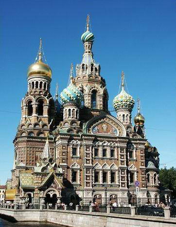 滴血教堂建造于1883年至1907年,1881年3月1日亚历山大二世皇帝在此遇刺身亡,所以教堂命名为滴血教堂。滴血教堂上有五光十色的洋葱头顶,反映了俄国十六和十七世纪的典型的东正教教堂建筑风格。教堂轮廓美丽,装饰花花绿绿,与古老俄罗斯风格与附近的古典式的建筑物成鲜明对比。