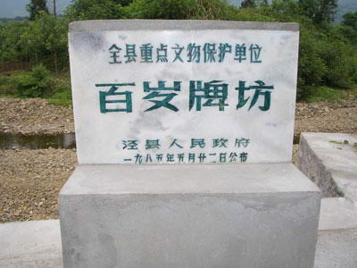 黄村百岁坊又叫“贞洁坊”,坐落在黄村乡九峰村村头,建造于清代嘉庆二十四年,距今已有一百七十年的历史。黄村百岁坊载了一个动人的故事。