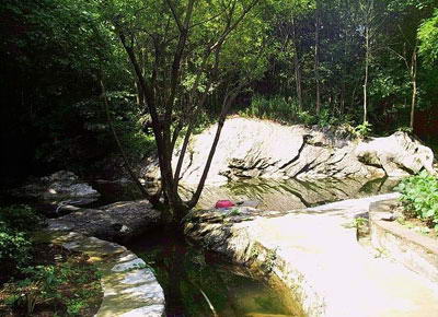 山中腰有座半山亭取名“龙皇庙”,是供游人、香客小憩的拜佛之地。登上山头首先映入眼帘的是一棵参天古柏,据说有几百年历史,加上绿竹蔽日,宏大的台泉寺就坐落在这一片常绿丛林的掩映之中。