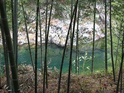 鬼磨剑石的旁边有棵大树,树上挂着很多红色的招魂帆,在风声中赫赫作响,树下有一个神龛,供信奉鬼神的人烧香祭拜。