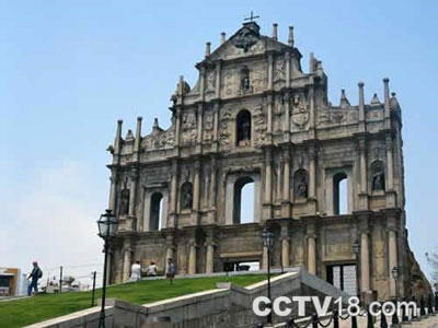 大三巴牌坊即圣保罗教堂的遗迹,位于澳门大三巴斜港大巴街附近的小山丘上。已经成为澳门的象征之一,也是游客澳门之行的必到之地。每逢周日和公众假日,在牌坊前还有学校表演团体演出中国传统舞蹈,供游客观赏。圣保罗教堂建成于1637年,整座教堂体现了欧洲文艺复兴时期建筑风格与东方建筑特色的结合,它呈现出迭柱式,高27米,宽23.5米,厚度达2.7米,慢慢延伸的台阶增加了它的历史沉重感。很长时间以来,中外建筑界、文物界和艺术界专家都十分重视大三巴牌坊,这绝非偶然。它气势恢宏,造型雄奇,仅上上下下装饰性的圆石柱就有40根之多,犹如生来就是单独的艺术品。中西合璧、雕刻精细,单独是大三巴牌坊的造价,300年前已达3万两白银。成为当时远东地区最大规模的一座天主教教堂。教堂原本由一名意大利籍的耶稣会神父设计,由日本工匠以鬼斧神工的技术协助建成。1602年奠基,1637年全部竣工,而教堂前一段长石阶则于稍后完成。这间教堂与火结下不解之缘,从其雏型起台至现时仅存的前壁牌坊,先后经历三次大火,屡焚屡建,见证了活生生的历史。1835年,圣保罗教堂被一场大火烧毁,仅残存了现在的前壁部分。1835年1月26日黄昏,圣保禄教堂失火,一发不可收拾,焚烧了两个多小时,整幢教堂几乎付诸一炬,幸好教堂最珍贵的前壁仍能保存屹立,成为今日的大三巴牌坊,期间曾数度修葺,最近一次大规模的维修保养工程于1991年进行。“三巴”是“圣保禄”SAOPAVIO的译音,因为它的形状与中国传统牌坊相似,附近建有另一座较小规模的圣保禄教堂,所以取名为"大三巴牌坊"。大三巴牌坊已有350多年历史,是澳门最为众熟悉的标志,也是著名的旅游景点,初来澳门的游客绝不会错过来此参观、留景的机会。