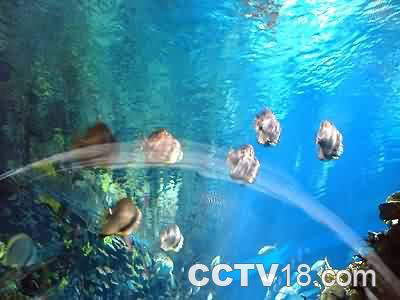 北京海洋馆水体总量1.8万吨。设计养殖的淡水、海水生物1000多种、5万余尾。其坐落在北京动物园内,南倚长河、毗邻北京展览馆、天文馆和首都体育馆,交通极为便利。作为世界最大的内陆海洋馆,该馆的总建筑面积达4.2万平方米,绿化面积达8万多平方米。场馆外形采用了别具一格的“海螺”形状,色彩以蓝色和橘红色为基本色调,分别代表了神秘浩瀚的海洋和海洋生物无穷无尽的生命力。其内部设计也别具匠心,屋顶均为网架结构,并采用蓝色和黄色进行装饰,将一个蔚蓝色的世界呈现在人们面前。
