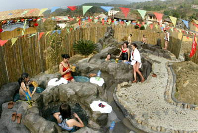 大明谷温泉村千亩规模,集药浴、精油浴、花瓣浴、牛奶浴、茶浴、醋浴、酒浴、高温池、纯汤池等大型健康水疗场所;还提供餐饮、烧烤、钓鱼、沙滩排球、登山道、水上乐园、儿童游乐园、滑草场、商务会议等服务配套区域设备,是旅游观光,休闲养生的首选胜地。