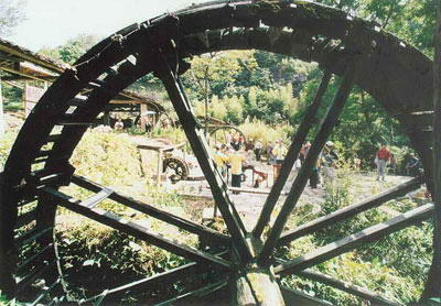 这悠悠转动的水车,仿佛向我们诉说着它的漫长历程。它一直在这儿默默冲打着这些高岭土,那一阵阵的冲击声让我们想起了远古的文明。水车又称水轮,是以流水为动力,进行旋转的动力装置。早在公元前1世纪,东西方几乎同时发明了水车。在中国,水车的历史久远,应用地域广泛,江南水乡,中原地区及至新疆的河溪处均有应用。汉代桓谭的《桓子新论》里就有关于水碓的记载,水碓是利用水力舂米的机械。据陆延烂《南村随笔》描叙:水碓闽浙最多。凡山溪急流处,皆可为之。经木为轮,植木于停岸水中,置轮其上,水冲轮转,昼夜不傍,屋内排碓具有数只,以机拨杵,逐臼自春,周而复始,不用人力。