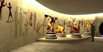 走过一扇仿造希腊竞技场运的柱式门头,就进入了第一展厅。第一展厅的主题是奥运会的过去、现在与未来。仿古希腊奥林匹克宙斯神庙,让你仿佛来到了奥林匹克竞技会的发源地。往前走,就可以看到一幅古代奥运起源的壁画,描述了佩洛普斯娶亲的故事。古代奥运会从公元前776年到公元前394年的1000多年的时间里,一共举办了293届,经历了盛世、衰落和毁灭的三个阶段。在这里,你可以了解到,古代奥运会也是每4年举办一次,每届只举办一天,后来随着比赛项目的增加,时间延长到5天,也有开幕式、闭幕式和庆典活动。与现代奥运会一样,古代奥运会也有点燃火炬仪式,不同的是奥林匹克圣火在当时成了休战的使者,通过火炬传递,传达休战的告示。