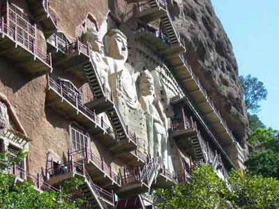 敦煌莫高窟属全国重点文物保护单位,俗称千佛洞,坐落在河西走廊西端的敦煌,以精美的壁画和塑像闻名于世。它始建于十六国的前秦时期,历经十六国、北朝、隋、唐、五代、西夏、元等历代的兴建,形成巨大的规模,现有洞窟735个,壁画4.5万平方米、泥质彩塑2415尊,是世界上现存规模最大、内容最丰富的佛教艺术地。近代以来又发现了藏经洞,内有5万多件古代文物,并衍生出了一门专门研究藏经洞典籍和敦煌艺术的学科——敦煌学。但莫高窟在近代以来受到许多人为的损伤,文物大量流失,其完整性已被严重破坏。1961年,莫高窟被中华人民共和国国务院公布为第一批全国重点文物保护单位之一。1987年,莫高窟被列为世界文化遗产。是中国四大石窟之一,四大石窟还有:龙门石窟、云冈石窟和麦积山石窟。