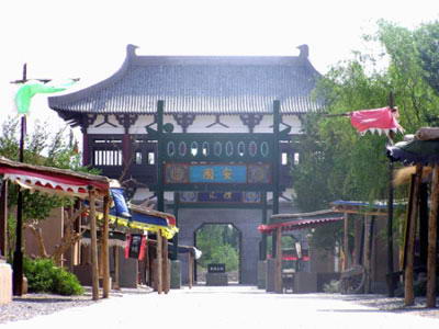 敦煌影视城又名“仿宋沙洲城”,“敦煌电影城”,是1987年为中日合拍大型历史故事片《敦煌》,以宋代《清明上河图》为蓝本,仿照沙州古城,由日方出资,参考中国古代建筑风格精心设计、建造而成的人文景观和影视拍摄基地。建筑面积1.27万平方米,位于敦煌市至阳关公路的南侧大漠戈壁,距市中心25公里。