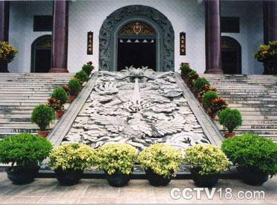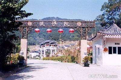 淡浮文物院,迎面是一座耸立的大石牌坊,三门歇山顶建筑,长约30米、高16米,气势宏伟磅礴,正中有大匾题四字,两侧匾额分别书“金声”、“王振”,皆是饶宗颐先生的手迹。牌坊到院殿是三进石阶,院内花圃簇拥着石雕的麒麟、青狮、盘龙及生牛等吉祥物。在三进的石阶中间,有一宛如游龙出水的巨幅石雕,长约9米,宽3米,由十几块花岗岩石精雕成老龙头吐水,栩栩如生,巍峨瑰伟的主殿建筑为重檐出阁,琉璃飞瓦,四根玫瑰红的花岗岩石柱,稳重庄严。主殿正中匾碑“淡浮院”三个馏金大字由傅杰所书,是从泰国的淡浮院拓本移植的。主殿门外挂上阴刻对联“远望观云,登高视野”,为原全国佛协会长、书法家赵朴初墨迹。殿内是佛祖释迦牟尼全身金像,两旁是“飞天大圣”塑像。