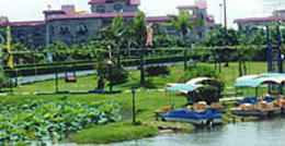 旅游度假农庄占地四千亩,它既是一个三高农业生产科研基地,又是一个具有亚热带农庄风格的集居住、度假、观光、娱乐、运动、休闲于一体的综合度假胜地。农庄位于义沙岛东端,下横沥水道与蕉门水道汇合处,濒临珠江口,三面环水,呈半岛形。这里视野开阔,空气清新,草木葱绿,景色迷人。坚固的石堤将肥沃的沙田与河水分隔开,千米长的沙滩,水阔滩缓,平坦松软,沙粒匀细,三百多亩的天然湖,湖水清澈,水产丰富;百多亩的荷塘,碧叶翠梗,清香四溢,令人心旷神怡,流连忘返。