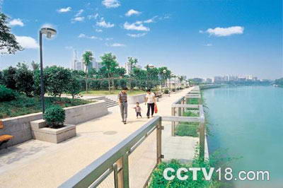 釜山公园是集生态、景观和休闲于一体的滨江公园,位于美丽的蓬江河东南岸,倚邻秀美的白水带风景区,从江门大桥至白水带公园入口处,规划面积为10.34公顷。