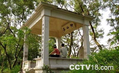 再往上登上山脊,就是新建在西端的一座半圆形的观月台。观月台曲径回廊,林木深深,中间一块绿荫小广场,总面积600平方米,可容纳数百人观景。台旁有一块“秋月台”残碑,记述建筑“秋月台”的经过和过去赏月的胜迹。