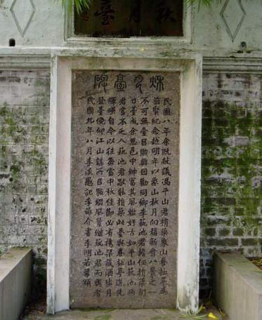 再拾级而上,可见绿荫丛中有榕台、黎壁湲先生纪念华表、灵岩磨崖石刻、养拙亭遗址等。黎壁湲先生纪念华表是他的学生赵公漠所设。黎壁湲(1855-1920)晚清廪生,科举废后改教中学,当时的文化名人何琴礁、李香介、李卓生等均是他的学生,发动养拙亭遗址(现养拙台)后边有块石碑,刻着《养拙亭记》,碑文清晰可见:“明初,张象山先生讲学兹山之麓,谢邑侯景旸筑养拙轩以居之,圮毁久矣。今秋与冯君锡蕃访洗砚池,予谓宣特建一亭以资景仰。锡蕃函告乃兄平山君。许之,逐建此亭,仍楬曰养拙。既成,得没字碑于山下,移置亭后记其事如此。民国八年后学李春华并书”(碑文标点是编者所加,下同)养拙亭遗址右边数步有“亦台”,台后也有石碑没入山边,得以保存。其碑文是:“民国戊辰孟夏之初,仰张象山之高风,共游览于此。见夫没砚池上,养拙有亭,望池有台,余如可轩榕台于诸亭台罗列左右,诚乐地也。同人亦筑此台,以供游人憩息,故名之曰亦台,并列叙时永留纪念。”碑文正文后列出16人名参与修筑亦台。从上面两篇碑文可见,张象山先生确实是当时会城人所景仰之先贤。这些残留下来的胜迹,也铭刻着当年的华侨、港澳同胞深深的爱乡情怀,更使人想起侨乡新会的会城确实是一座历史文化名城。