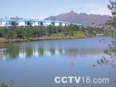京明温泉度假村占地总面积666万平方米.2200亩生态优质茶齐整地点缀在山峦之间,是一道亮丽的绿色风景 线,现代化的茶叶加工厂,幽雅的茶馆,对于长期生活在喧嚣都市的城市人,旌旗的大自然风光、宁静的环境、清净的空气,无异分带给你无穷的情趣和享受。七泓碧湖,象一串珍珠环绕群山之中。