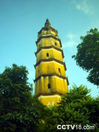 培风塔位于故城洪阳镇东北后坑村,又称“培风宝塔”,普宁“八景”之一,建于清·乾隆七年(1742),因古时该处属乌犁乡,俗称“乌犁塔”。塔通高36米,七层,平面八角形,砖土混合结构,塔身则系三合土夯筑而成,在国内诸塔中,实属罕见。塔基边长9.8米,塔座高1.65米,筑九级台阶而上痤台,塔座上下有栏杆,栏杆望柱上刻一对石雁、一对石狮,造型生动。塔身第一层下外围边长3.9米,周边长辈31.2米,塔身高31.7米。塔内各层空心,第一层塔墙厚2.55米,每面边长1.5米,塔身逐层依次缩小至最高第七层,每面边长仅0.71米。塔座仅辟一门入塔腔,塔门向西,门阔1.3米,高2.77米,拱顶,石门框上阳刻:七级高擎雄插汉,千峰环拱壮抉与。塔腔有内转石阶可登上各层,内转石阶共120级。第一、二层以上每层开四个门(窗),相邻各层四门(窗)相互交错,既美观,又能在各层室内向外眺望四面八方。塔檐以红砖叠涩出檐。最高层(第七层)塔腔内置有藻井,外面有走廊,走廊上每个角有一石柱,柱上以瓦和三合土做成卷草花纹,造型石雅优美。塔刹为铁铸相轮宝瓶状。