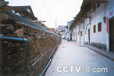 在一座民居的外墙上,挪开堆放在墙边的松枝,一条当年红四军留下的标语清晰地展现在眼前。1930年4月间,红军从江西寻乌至平远八尺到仁居开展革命活动时,在古城的公共场所和百姓住房的墙上书写了大量的革命标语。