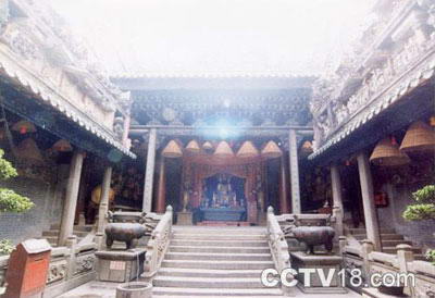 祖庙由三座庙宇并列而成,武当庙(也称北帝庙)作为主体庙居中,左为普陀庙(也称观音庙),右为文昌庙(也称文昌庙),三庙分别供奉着北方真武玄天上帝、观世音菩萨、文昌帝君的神像。三庙的建筑均为二进院落四合院式布局,采用砖木结构。墙体全是水磨青砖对缝砌就,屋面为碧绿色的琉璃瓦,出X施以木雕莲花托,四角翘飞,屋脊上镶有双龙戏珠及瓷制人物,栩栩如生,“艺术裙”上刻有历史典故、神话传说、人物花卉、诗书字画。祖庙现存的砖雕、陶塑、石刻、灰塑等,以其工艺精湛、造型独特、色彩斑斓,展现出祖辈们的聪明才智和浓厚的民族特色,使这座古老的庙宇真正成为巧夺天工的艺术殿堂,让人赏心悦目,流连忘返。