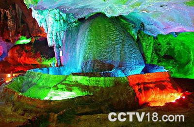 宝晶宫位于英德市区南郊7公里的燕子岩山中,是一座四层相叠呈金字塔形的溶洞(目前只开发三层),游程长达1.5公里。在洞内曾发现一批距今约十万年的打制石器。 洞内总面积达2万多平方米,共有7个厅洞,其间有200多米长的石林长廊和迷宫似的通道,各种钟乳石景和洞中河湖形成了将近100个景点。游人在洞内的游程大约有1.5公里,从最低处到最上层高105米,有700多级台阶。洞中比较著名的景点有“宝宫琼蕾”、“龙王出巡”、“天池飞瀑”、“一洞天”、“雷峰塔”、“玉树寒林”等美景,还有一片亿万年前由彩色石粉沉积而成的灰华坡,面积达4000多平方米,规模非常罕见。最具特色的是一处“暖洞”,整个洞内的暖空气上升到洞顶而形成一块气温明显高出其他地方的区域。 交通:从英德火车站乘公共汽车或旅游中巴,半小时即到。