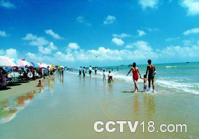 沿中心广场两旁的便道可通观海大堤。漂浮在清冽的海水中,任那层层白浪扑打,随那阵阵涛声经唱,你心中的什么烦恼都会飞到九霄云外。遇上一个什么节日,海滩上委起“人龙舞”,那就更添情趣。在海滩上经常可以看到的倒是渔夫“拉大网”,那是一种原始的打鱼方式,虽然没有刻意安排,却常常吸引众多游客的围观,这是人们喜欢分享收获的喜悦所致。若有心思买些刚打上来的鱼虾螃蟹,三五知已在太阳伞下即烹即食,那才是神仙过的日子!