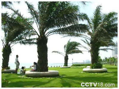 海滨公园观有面积8公顷,主要以植物景观和生态造景为主,园内保留有良好的生态环境。栽培的园林花灌木达8大类,35个品种,近10万株。园内有2.5亩桂花园,占地10亩的海角园、绿化迷宫、中日友谊园、日本式茶道园林、花卉盆景园等植物景点;另外还有八角亭、乐寿山庄、白宝山公馆遗迹等古迹;国内还建有观海用的畅观楼以及儿童乐园。